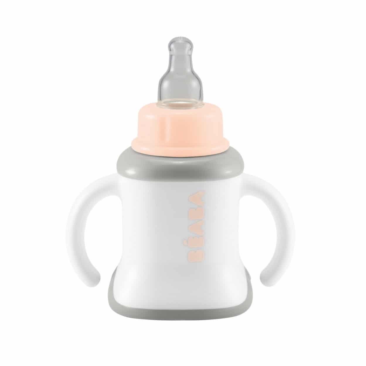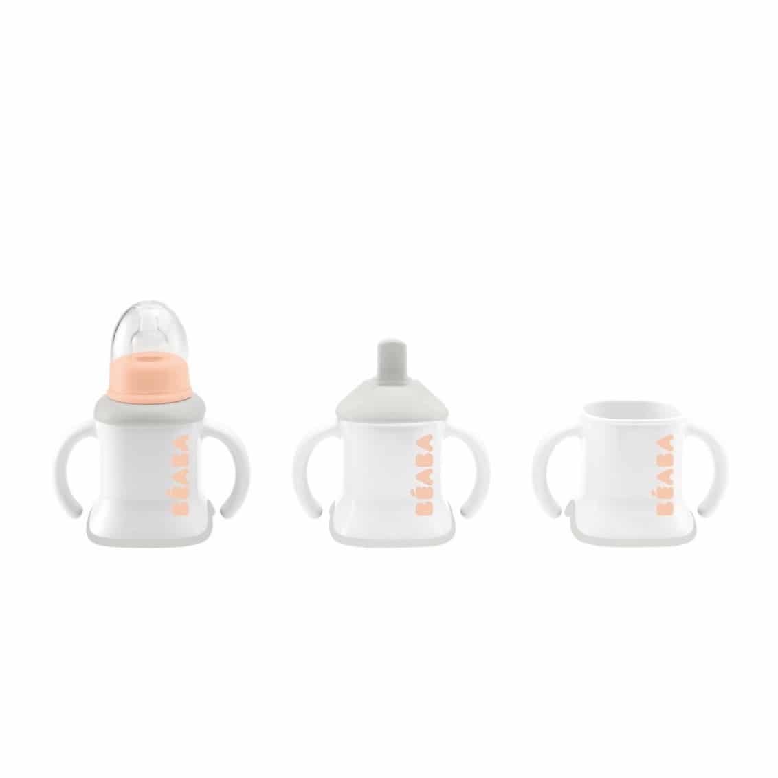 Beaba 3u1 šalica za bebe koja prati njeno odrastanje. Duda na vrhu šalice prati oblik dude na bočicama koje je dijete koristilo do sada, dok sisaljka sa Evoluclip sistemom protiv curenja pomaže u prelasku sa bočice na čašu. Dodatak na vrhu bočice se skida, te tada bočica postaje šalica