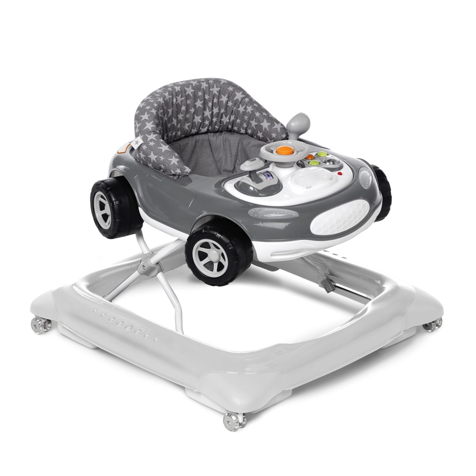 Hodalica Auto Sport bit će zabavno pomagalo u bebinim prvim koracima i prvim pokušajima istraživanje okoline. Ona ima posebno dizajnirane silikonske kotačiće koji ju čime izuzetno tihom, udobnom i jednostavnom za upravljanje. Silikonski kotačići idealni su za osjetljive površine kao što je parket jer neće stvarati oštećenja.