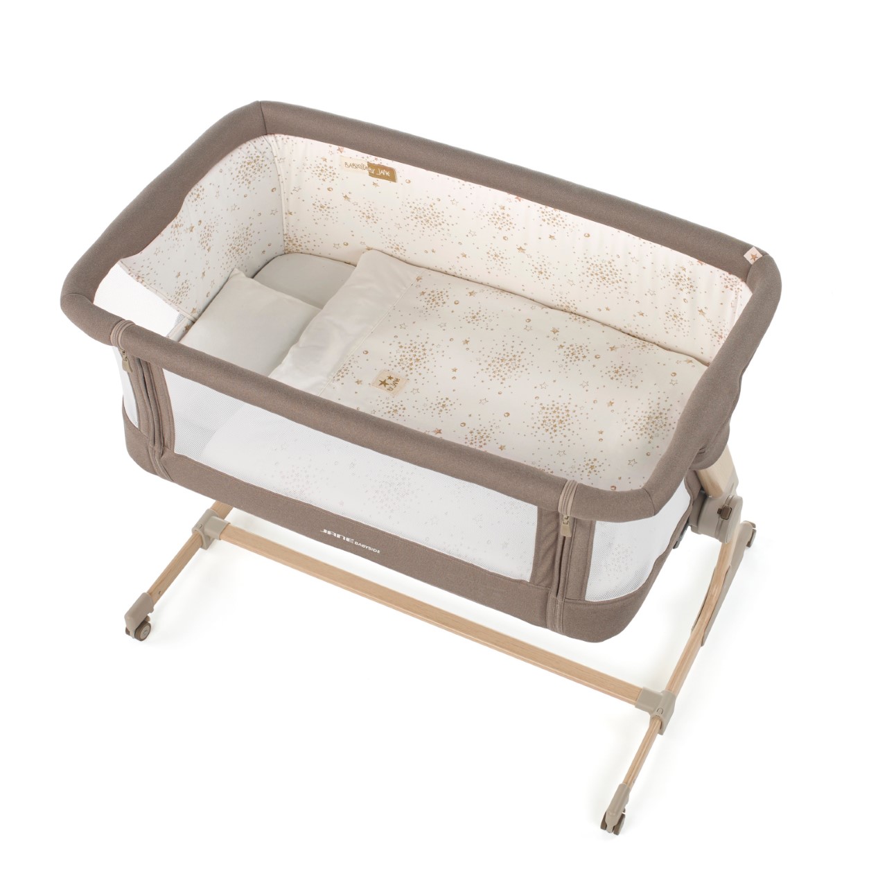 Jane krevetić Baby Side je najlakši i najpraktičniji način na koji vi i vaša beba možete dijeliti krevet. Omogućuje vam bezbrižan san, a bebi vlastiti prostor. Teleskopske noge sa 6 položaja visine čine ga kompatibilnim sa gotovo svim krevetima na tržištu. Baby Side krevetić može se koristiti i kao samostalni krevetić podizanjem prednje stranice. Zahvaljujući četiri neovisna kotača s kočnicom lako se pomiče i sklapa ukoliko idete na putovanje. Podnica krevetića s madracem nudi nekoliko položaja što omogućuje odabir najugodnijeg položaja za vašu bebu.