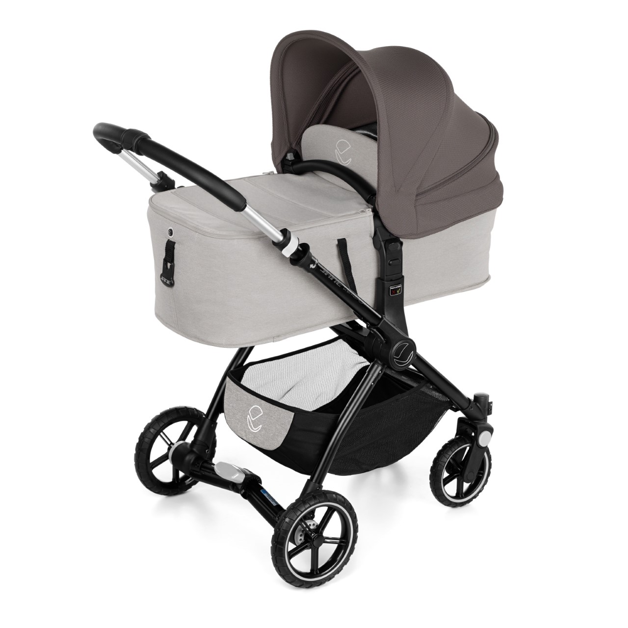 - Izuzetno lagana aluminijska konstrukcija opremljena s patentiranim Pro-fix sustavom koji omogućuje postavljanje i skidanje sjedećeg dijela, autosjedalice i košare uz pomoć samo jednog klika.
