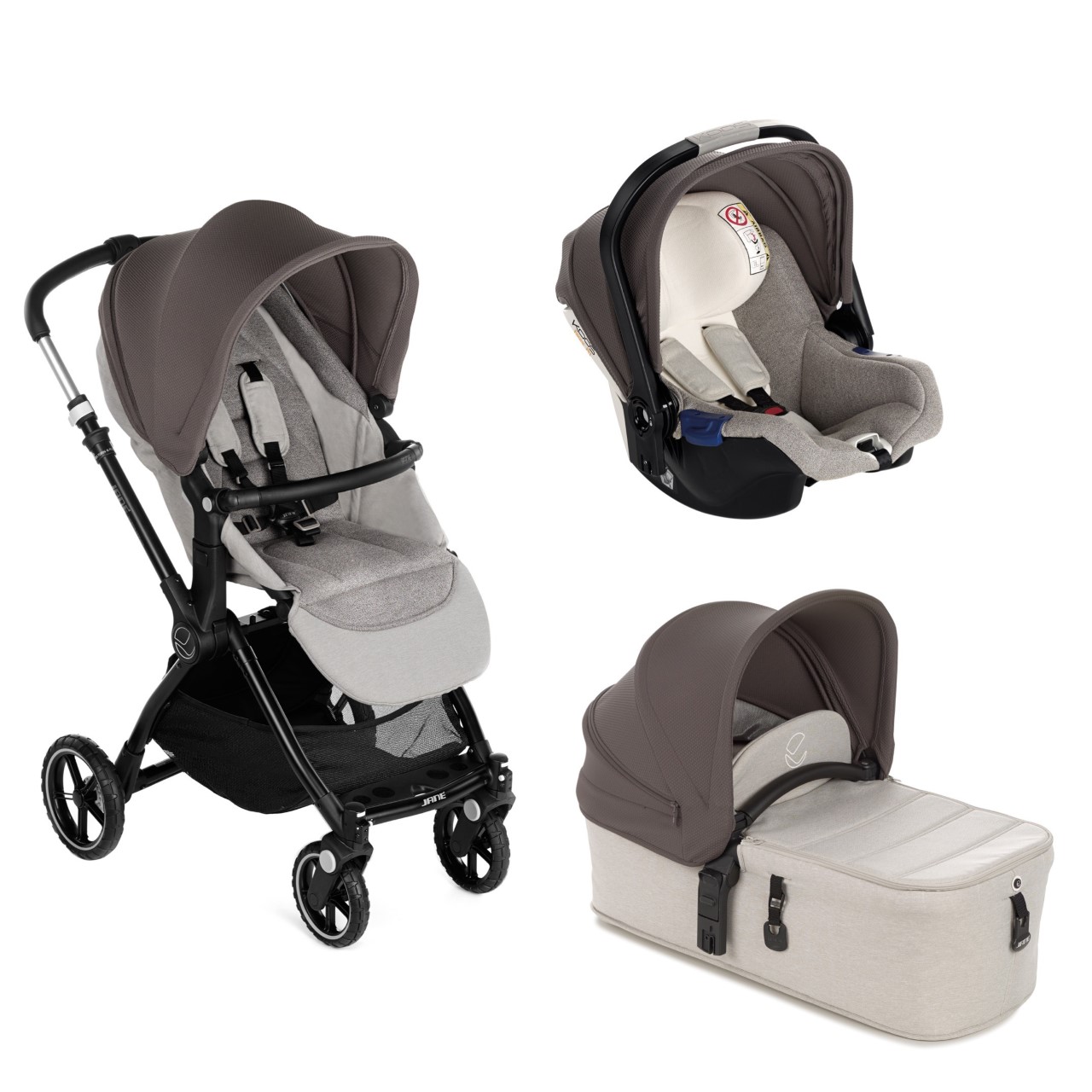 Kendo kolica 3u1 sastoje se od: kolica sa sportskim dijelom, Micro košare za kolica, Koos isize R1 autosjedalice, torbe s podlogom za prematanje i kišne kabanice.