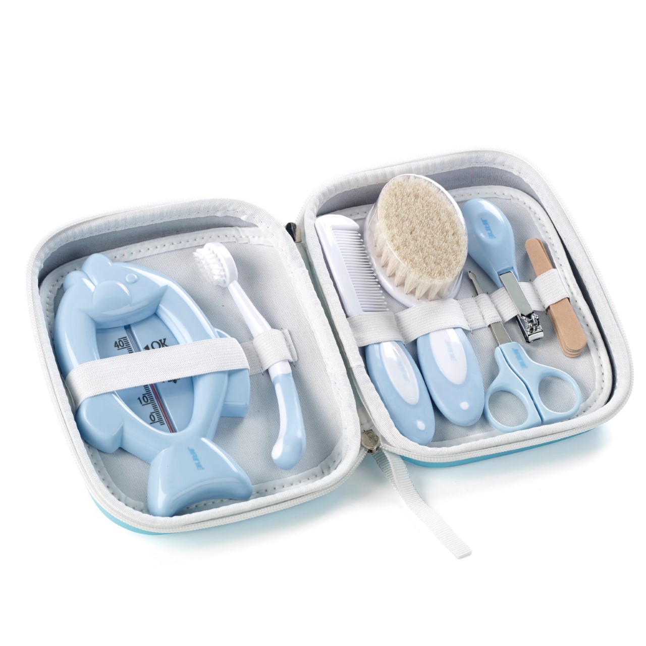 Prekrasan set sadrži sve potrebne rekvizite za njegu vaše bebe. Idealan je za održavanje bebine higijene, a može se koristiti od rođenja do adolescencije. Set za higijenu dolazi u kompaktnoj toaletnoj torbici koju možete ponijeti i na putovanje.